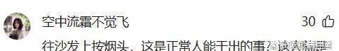 那评论没谈演技,也没聊八卦,就说了一件事。往沙发上按烟头,这是正常人能干出的事?这人就是坏